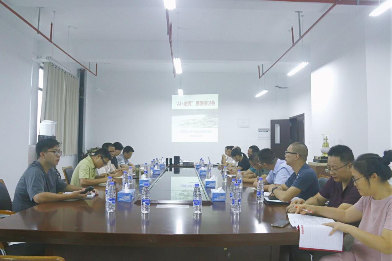 本网讯 9月23日,我院于三江校区(西园)天工楼第二会议室召开AI教学研讨会,积极探索教育教学数字化、智能化改革路径。学院院长何桂春、副院长陈飞、副院长余新阳和各专业老师参与了本次研讨。会议由陈飞主持。