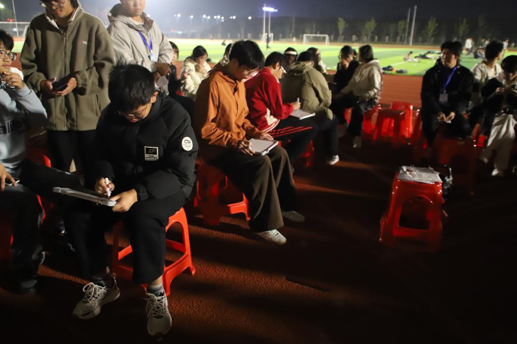 本网讯 为进一步丰富校园文化生活,凝聚向心力,营造温馨和睦的氛围。11月22日晚,我院在三江校区(西园)田径运动场举办了第十五届寝室文化艺术节之“同寝共乐 青春飞扬”寝室游戏大作战趣味活动。活动由学院学生社区服务中心、朋辈心理服务中心承办,设置了“石头剪刀布”“猜歌名”“你画我猜”“四人五足”四大趣味环节,吸引了全院众多同学踊跃参与,现场欢声笑语不断,青春气息盎然。