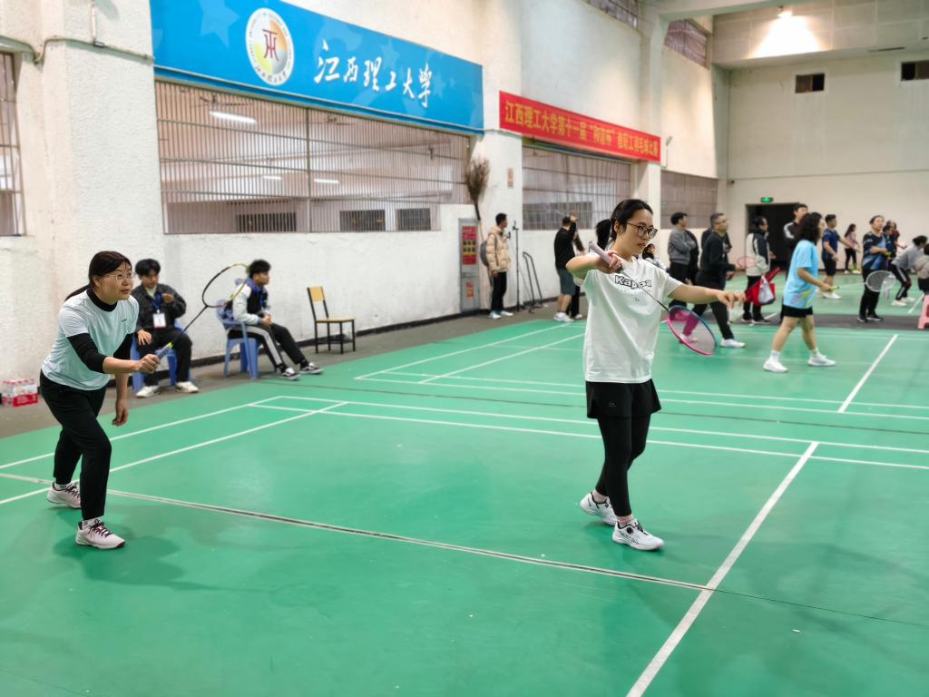 本次比赛竞争激烈,共有八组参赛队伍同场竞技。我院的老师们满怀热情、积极投入,每一场比赛都全力以赴。在赛程中,面对实力强劲的对手,我院的老师们毫不畏惧,在球场上尽情挥洒汗水,每一次击球都饱含着对胜利的渴望。他们灵活的步伐、精准的扣杀、巧妙的吊球,展现出了坚韧不拔的体育精神和团结协作的团队风貌。他们用实际行动诠释了“友谊第一,比赛第二”的体育精神,在赛场上留下了许多精彩瞬间。