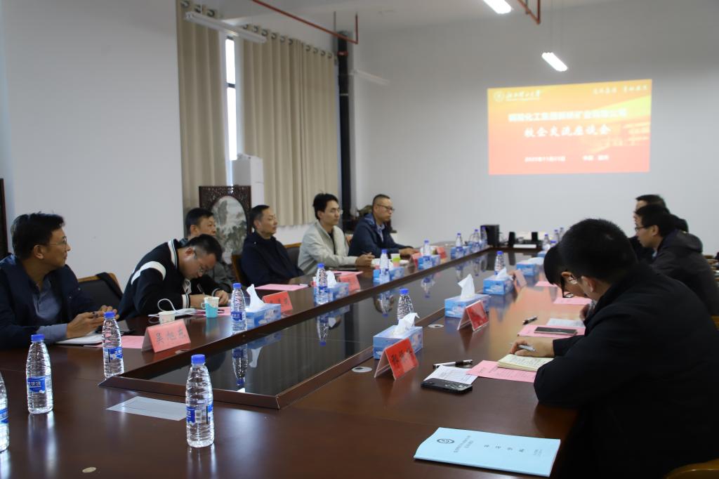 本网讯 11月25日,铜陵化工集团新桥矿业有限公司总经理葛联合、总经理助理阮元斌等一行来校交流,于三江校区(西园)天工楼第一会议室举办校企交流座谈会。我院党委书记陈明和相关专业老师参加了座谈会。