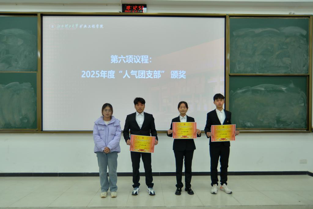 本网讯 为进一步加强基层团支部建设,激发组织活力。12月21日,我院在三江校区(西园)阳明楼110教室成功举办了2025年度团支部述职暨活力团支部“4+X”模式评选大会。学院学工办主任兼团委书记刘浩,党建组织员张小普,辅导员梁颜祯、刘黎明、肖婕担任评委,学院各团支部代表参加了大会。
