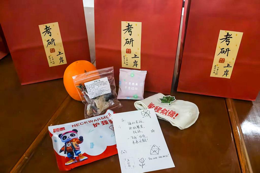随后,领导、老师们亲手将装有文具、暖心小物的祝福袋递到学子手中,握手、拍肩的互动里,藏着对学子们“一战成硕”的期盼。